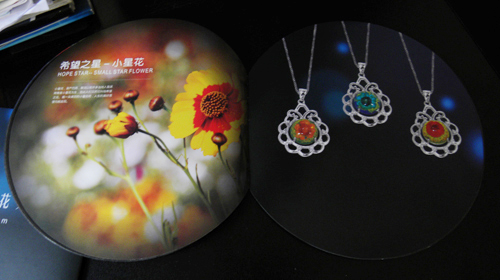 “花為媒”天然真花飾品,是擷取大自然中四季盛開、五彩繽紛的鮮花,經(jīng)過特殊工藝脫水、保色、干燥、壓制 、處理成立體花材,再按花的色彩、形態(tài)、質(zhì)感等特點(diǎn)適宜搭配,再經(jīng)過創(chuàng)作者的大膽構(gòu)思、設(shè)計(jì),把它和飾品相結(jié)合,使每一件飾品附加上真花真草,賦予它新的生命和原花形的再現(xiàn),增加了創(chuàng)意性,佩帶身上賦予人以清新高雅的品位。